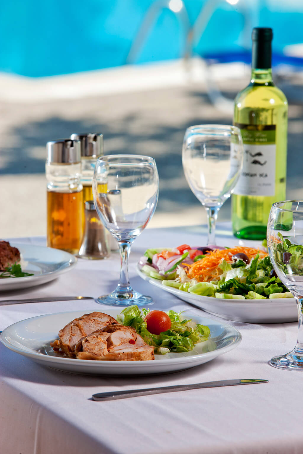 Hlavní Restaurace hotelu se nachází v blízkosti bazénů a je vyzdobena dřevem a barvami západu slunce. K dispozici je otevřený bufet s velkým výběrem jídel a dezertů, kde také podáváme bio produkty, které pěstujeme na našich polích.