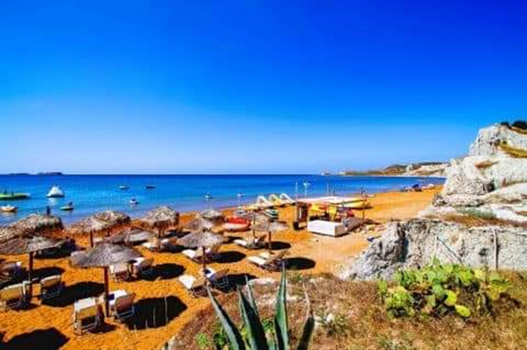 Xi Beach is known for its striking red sand and crystal-clear waters. Access is easy, with parking areas, snack bars, sunbeds, and options for water sports. It is perfect for relaxation, sunbathing, and swimming, offering a unique setting for photography.