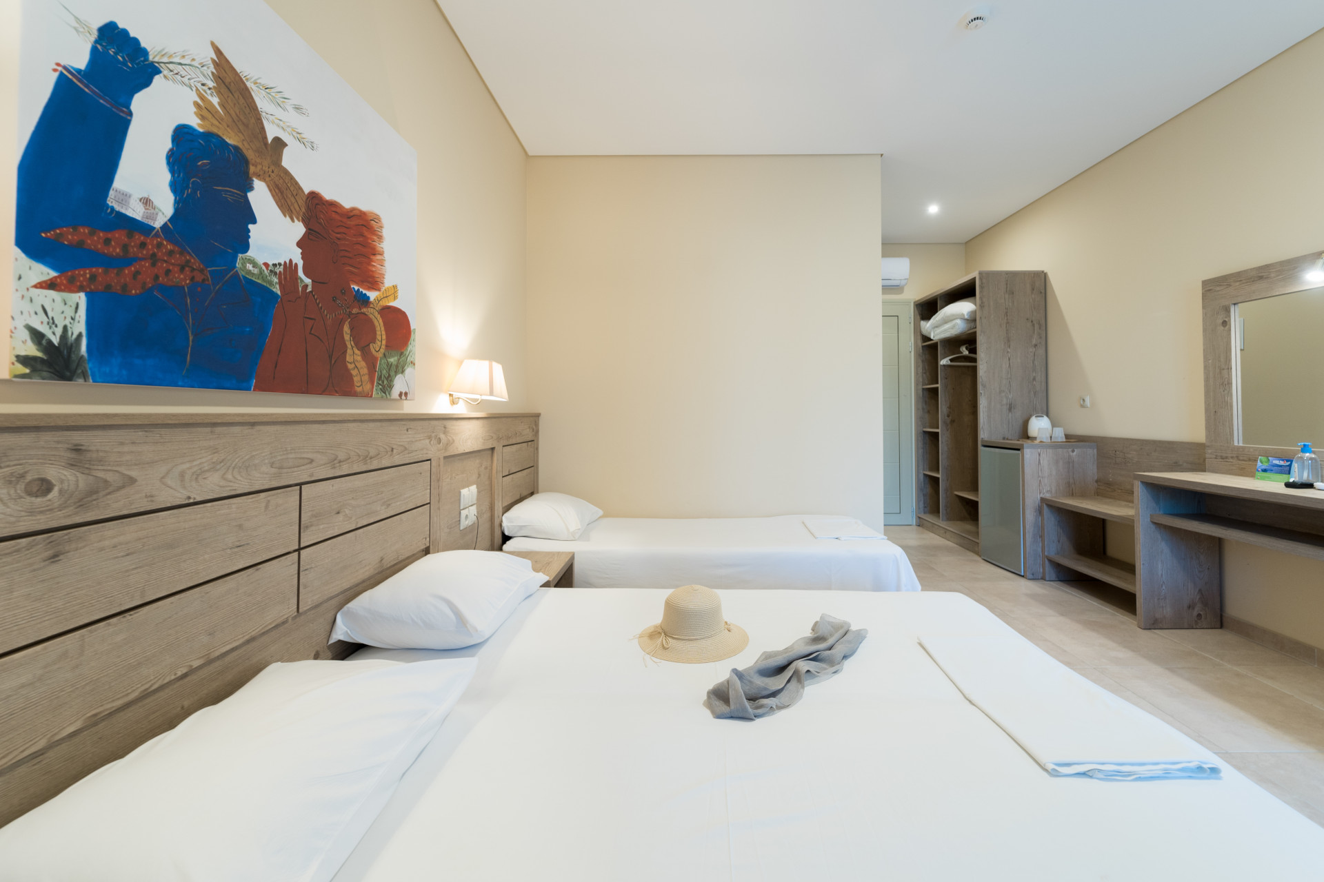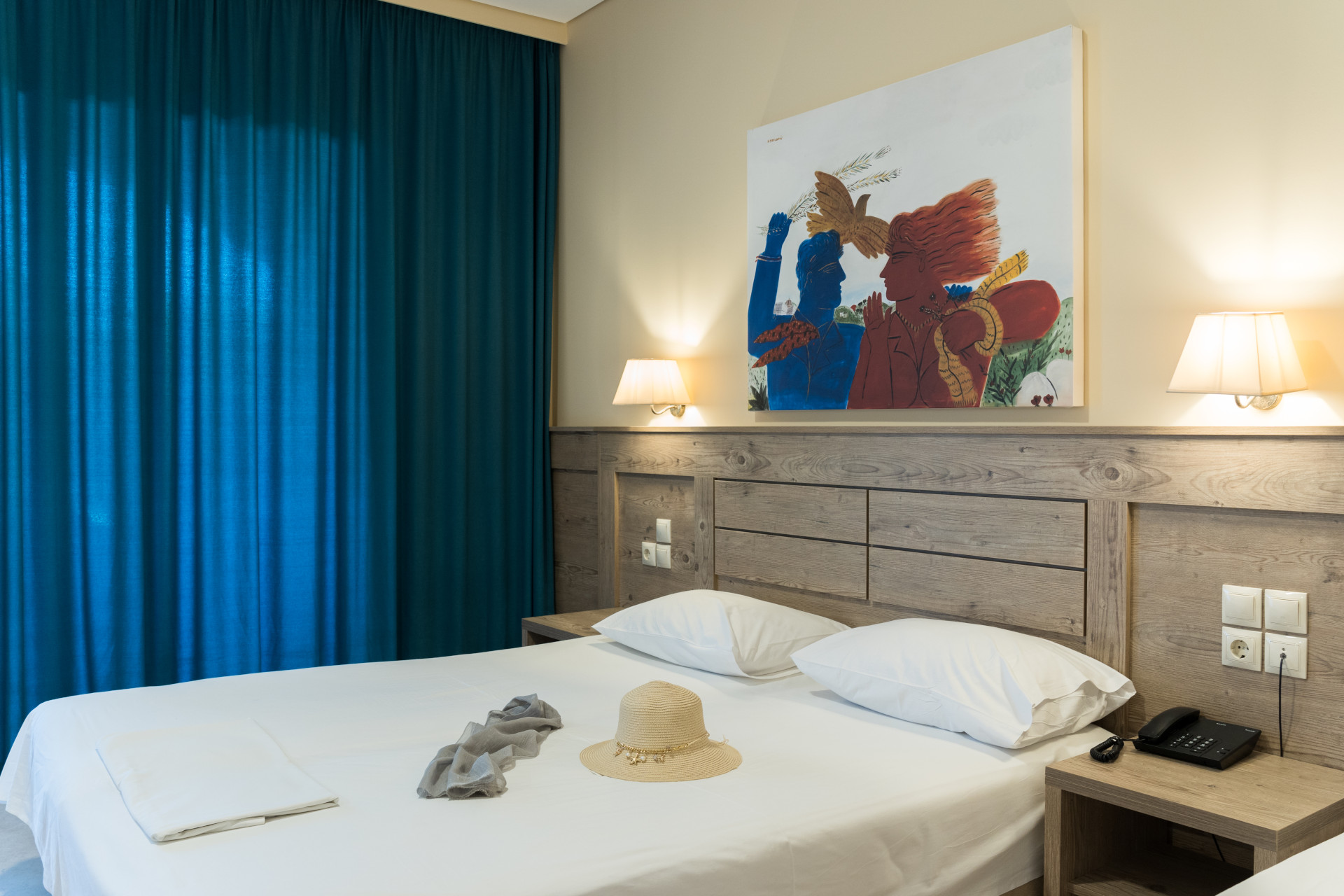 This omfortable and well-equipped room of Thalassa Superior can host 2 people: 2 adults and 1 child (up to 12 years old). Elegant and sophisticated, decorated in the sea shades of blue, it promises you peacefulness and complete relaxation.